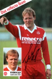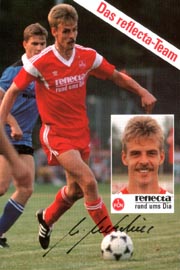 Die Mannschaft: Aleksandar Abutovic, Uli Bayerschmidt, Hans-Jürgen Brunner, Thomas Brunner, Jörg Dittwar, Günter Drews, Ralf Dusend, Christian Hausmann , Hans-Jürgen Heidenreich, Vlado Kasalo, Thomas Klein, Andreas Köpke, Christian Korek, Kurt Kowarz, Thomas Kristl, Stefan Kuhn, Ulf Metschies, Marc Oechler, Dieter Osswald, Joachim Philipkowski, Souleymane Sane, Martin Schneider, Frank Türr, Martin Wagner, Reiner Wirsching Der Präsident: Gerd Schmelzer Der Manager: Der Trainer: Hermann Gerland Der Co-Trainer: Dieter Lieberwirth Der Obmann: Christian Schmidt Der Betreuer: Klaus Majora Trikotsponsor: REFLECTA Autogrammkartenrückseite: REFLECTA, COCA - COLA (ohne Geburtsort) Ausstatter: ADIDAS |