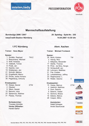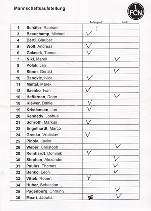 Gab nur Mannschaftsaufstellung (Links FCN - Rechts Brügge)